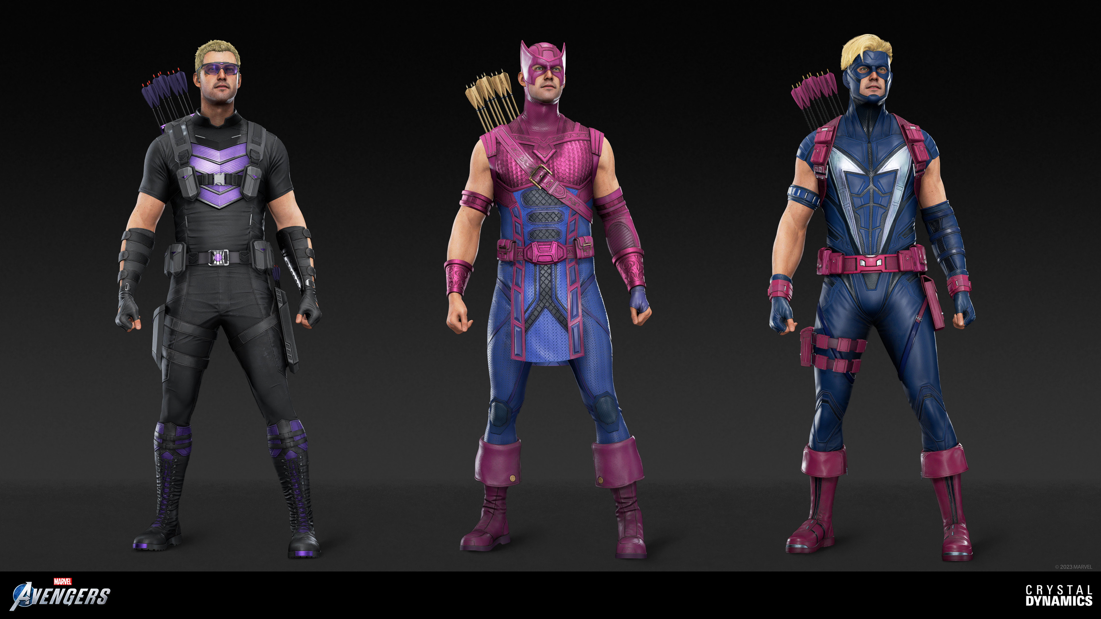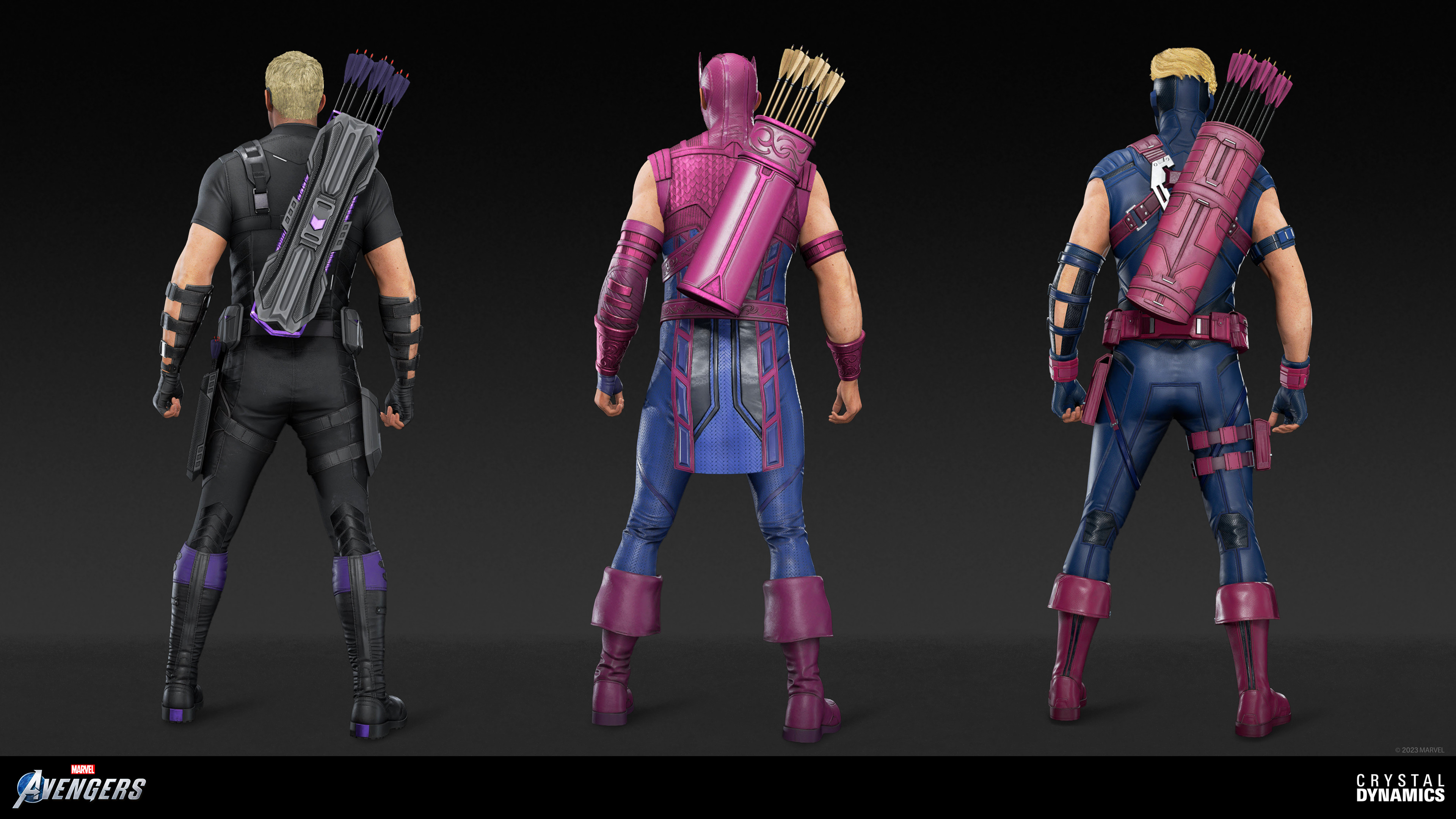 These outfits were a collaboration between outsource partners RedHot, Original Force 3D and the internal character team. The high poly, low poly and textures were provided by our partners. Other team members and I were responsible for outsource management, texture polish and final implementation. In addition, I created the hair cards for Hawkeye 90's Glory - project available here: https://www.artstation.com/artwork/3qRXeJ